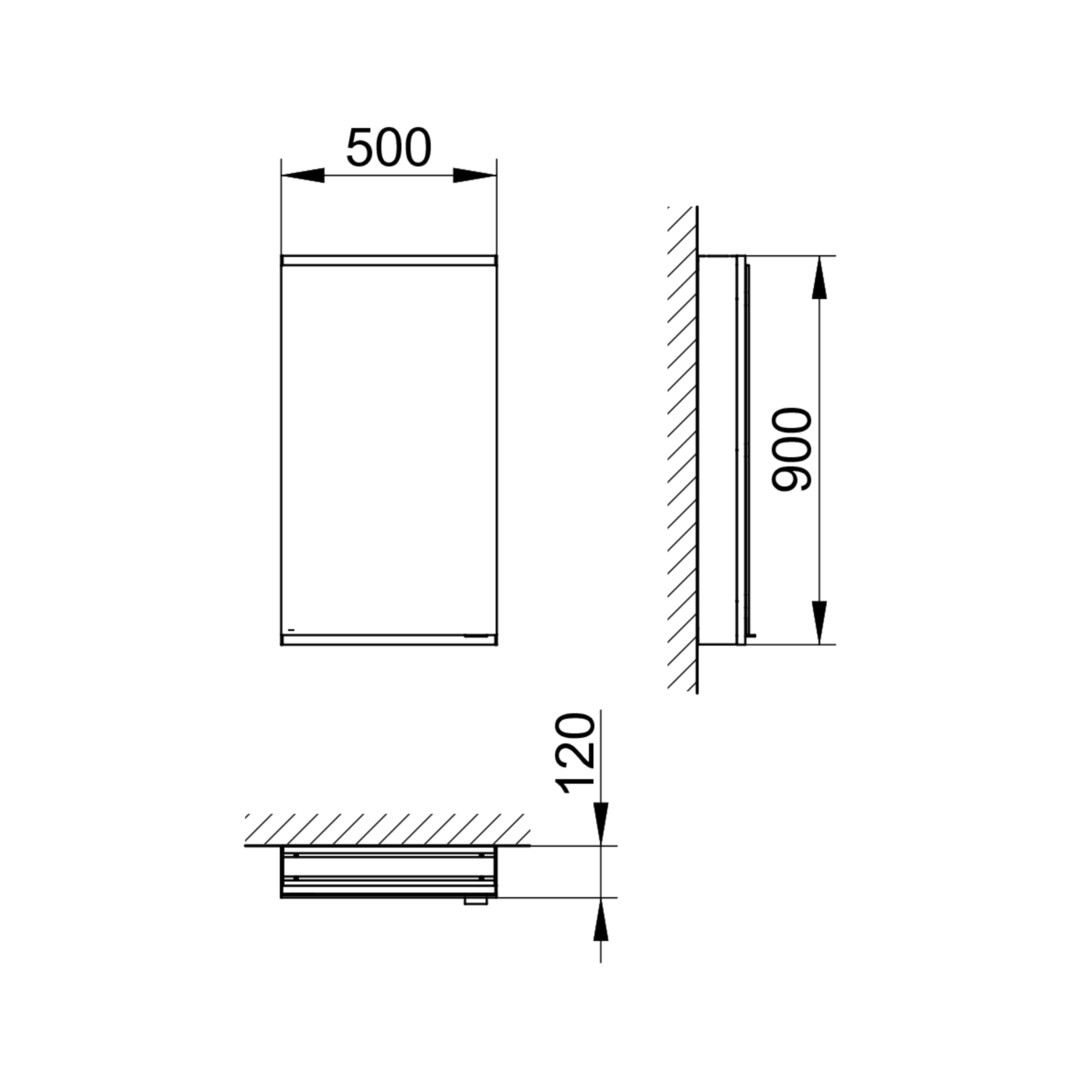 KEUCO Spiegelschrank Royal Modular 2.0 50 x 90 x 12 cm, ohne Steckdose, AP, 1-türig, Anschlag links 800001051000000