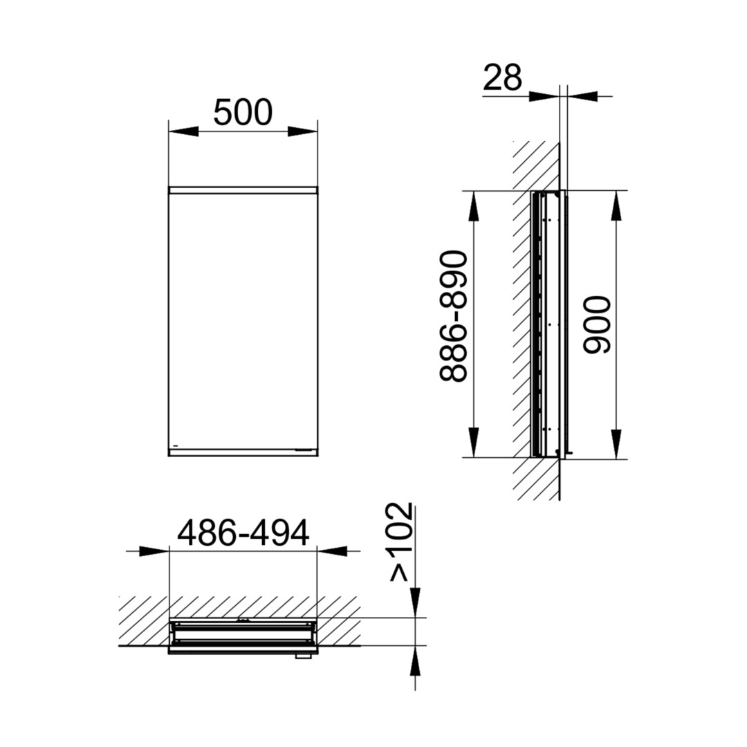 KEUCO Spiegelschrank Royal Modular 2.0 50 x 90 x 12 cm, ohne Steckdose, UP, 1-türig, Anschlag links 800000051000000