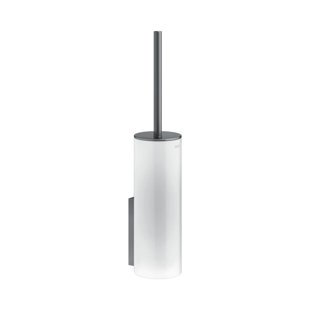 KEUCO Toilettenbürstengarnitur Edition 400 herausnehmbarer Kunststoff-Einsatz, mit Echtkristall-Glas mattiert, schwarzchrom gebürstet