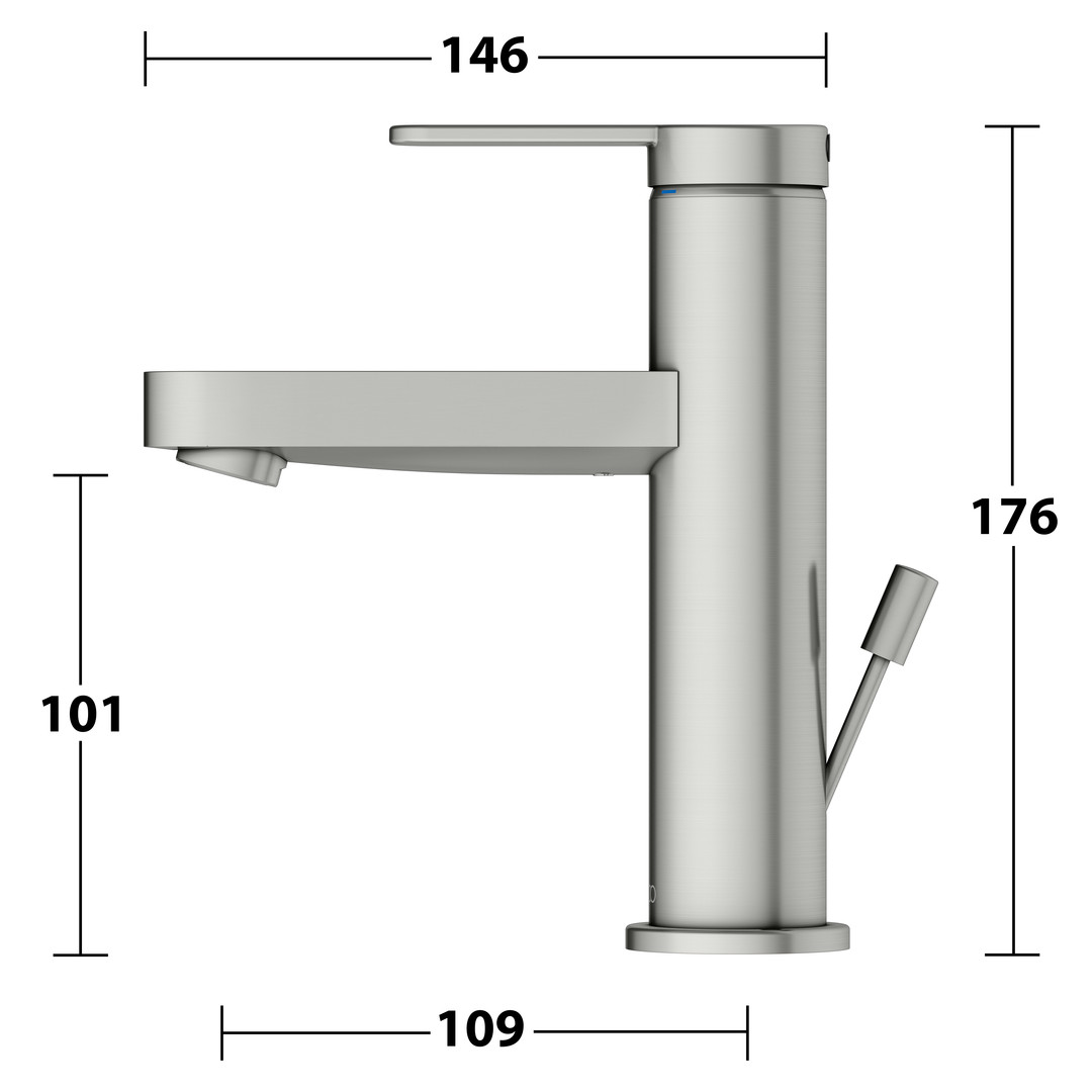 KEUCO Waschtisch-Einhebelmischer 100 IXMO Flat Ausladung 109mm, mit Ablaufgarnitur, edelstahl-finish KE59502063000