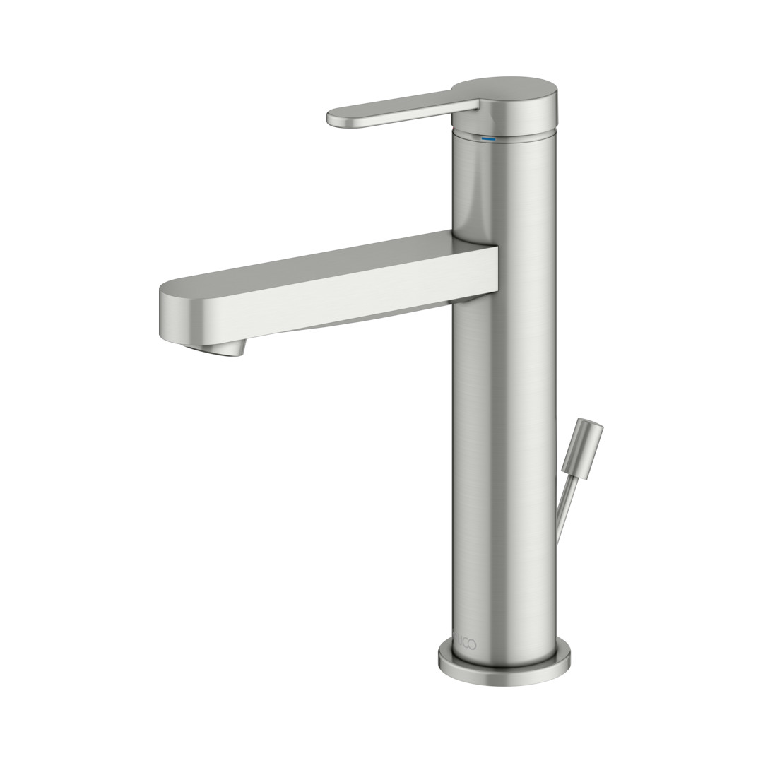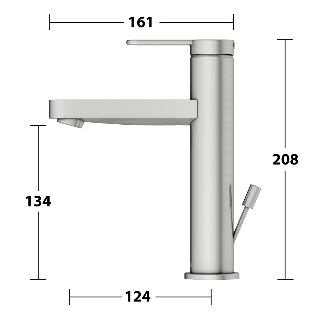 KEUCO Waschtisch-Einhebelmischer 130 IXMO Flat Ausladung 124mm, mit Ablaufgarnitur, edelstahl-finish