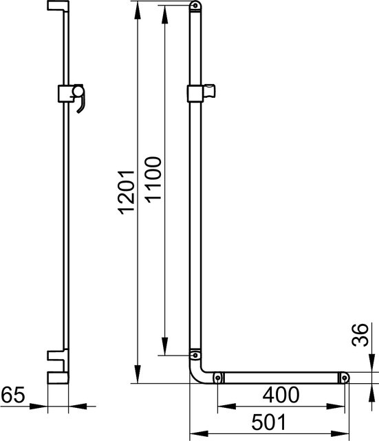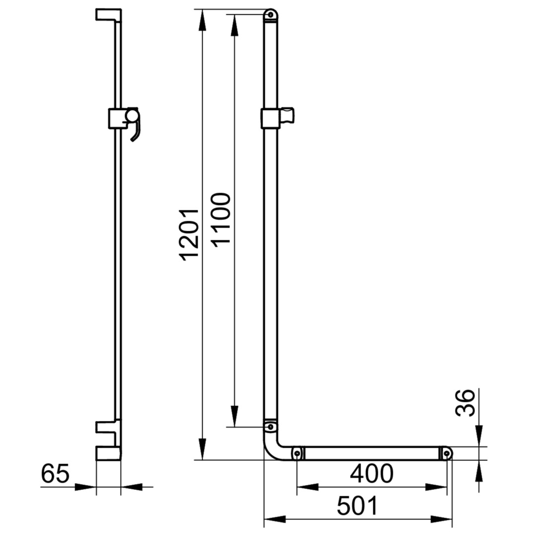 Höhe 1201 mm, Breite 501 mm, Brauseschieber für Schläuche mit konischer Mutter, Neigungswinkel verstellbar, mit Fliesenausgleichsscheibe (5 mm), Belastbarkeit 115 kg