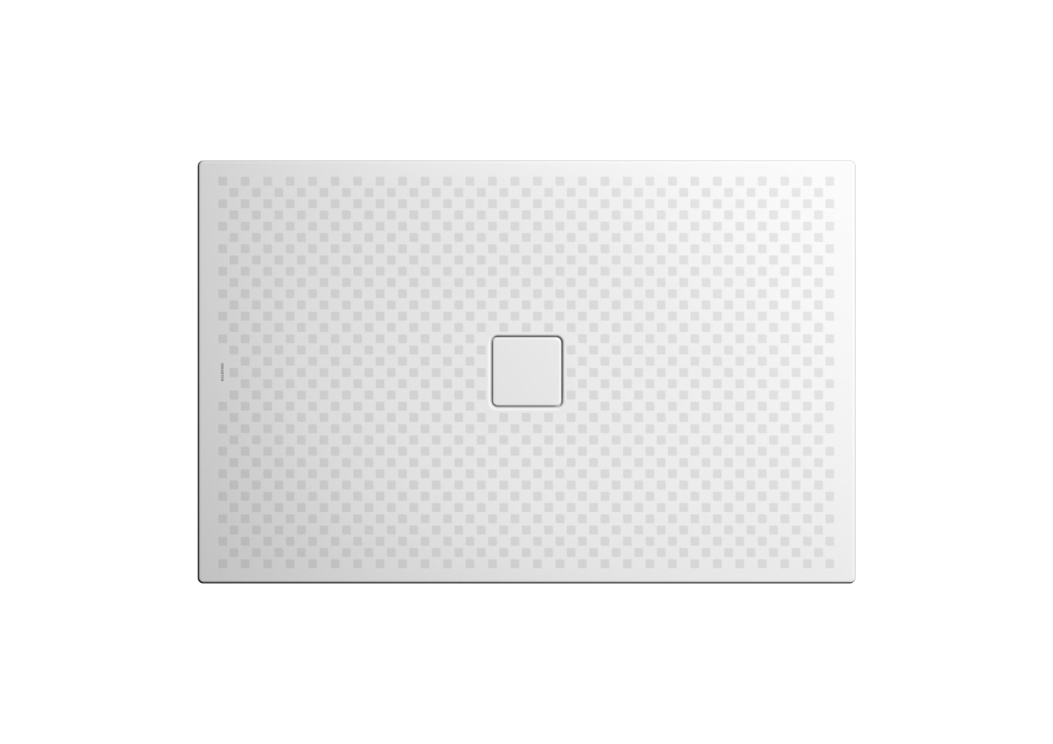 Außenform Rechteck, Randhöhe 32 mm, bodenbündig, rollstuhlbefahrbar, Stahl-Email Duschfläche, Ablaufloch Ø 120 mm, Ablaufposition mittig, Höhe mit Ablaufgarnitur 107 mm, Gewicht 25 kg, Basisfarbe alpinweiß, Zertifizierte Oberfläche: Kratz- und schlagfest, chemikalienresistent, hitzebeständig, UV beständig, nachhaltig, formstabil, hygienisch, Erdungslasche für Potenzialausgleich, Wannenträger extraflach