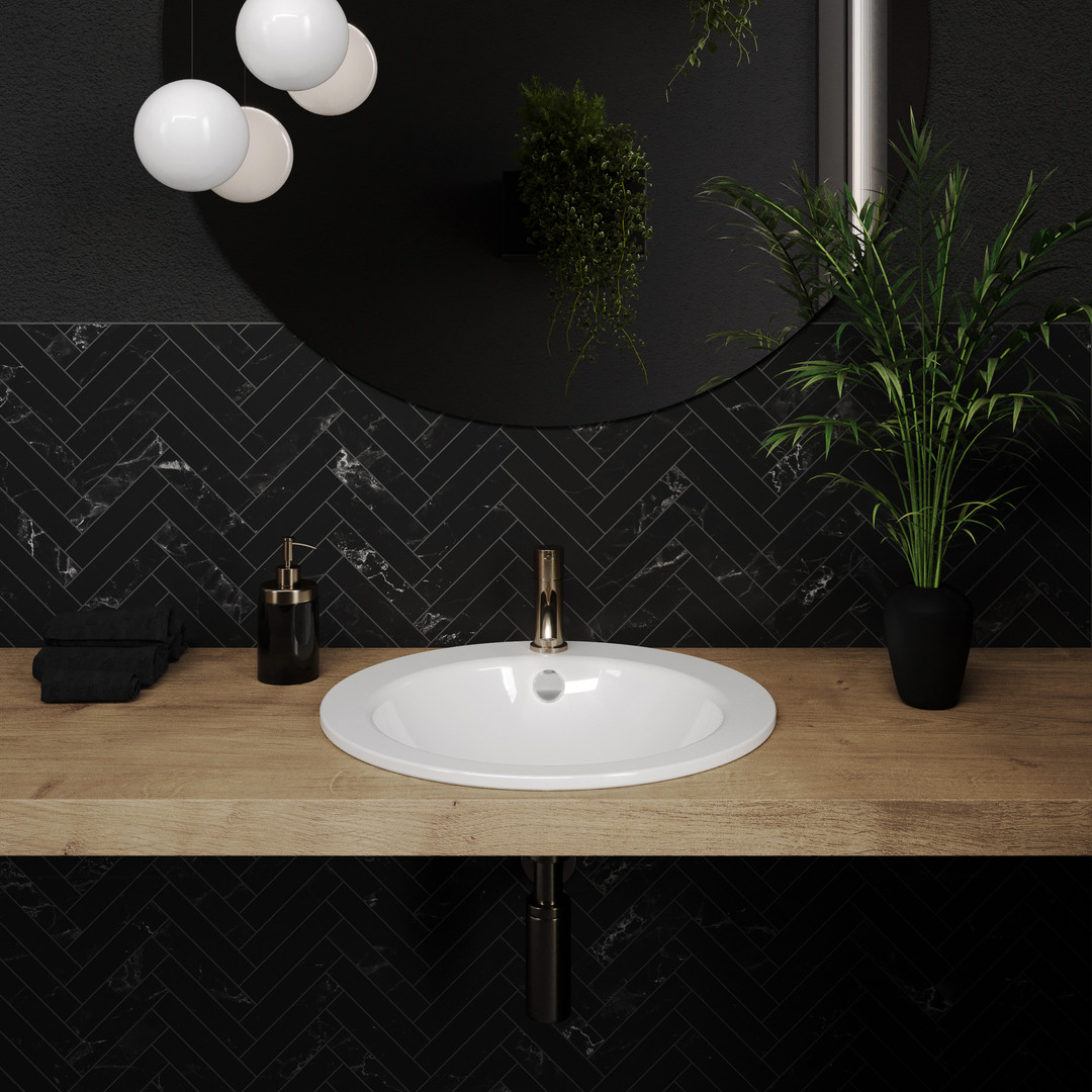Kaldewei Einbau-Waschtisch OBJECT R 3195 d= 47,5cm, 1 Hahnloch, alpinweiß, alpinweiß KA911607190001