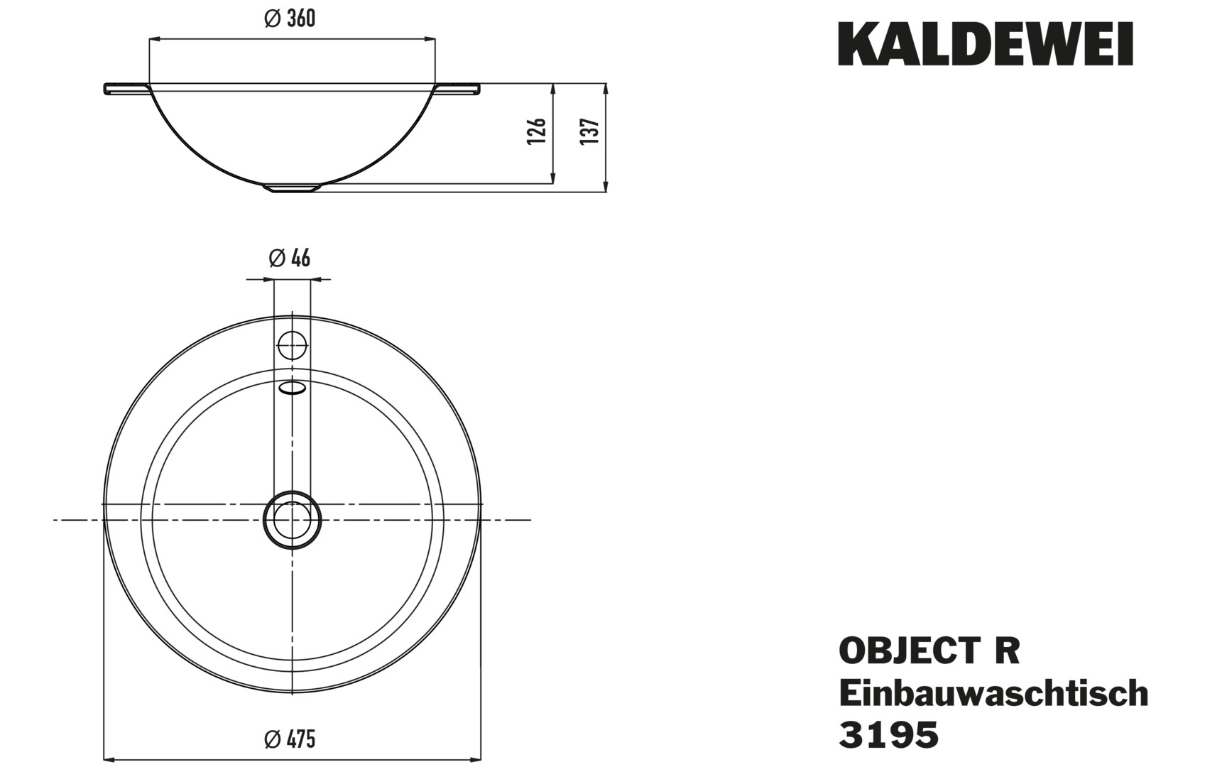 Kaldewei Einbau-Waschtisch OBJECT R 3195 d= 47,5cm, 1 Hahnloch, chrom, alpinweiß KA911606010001