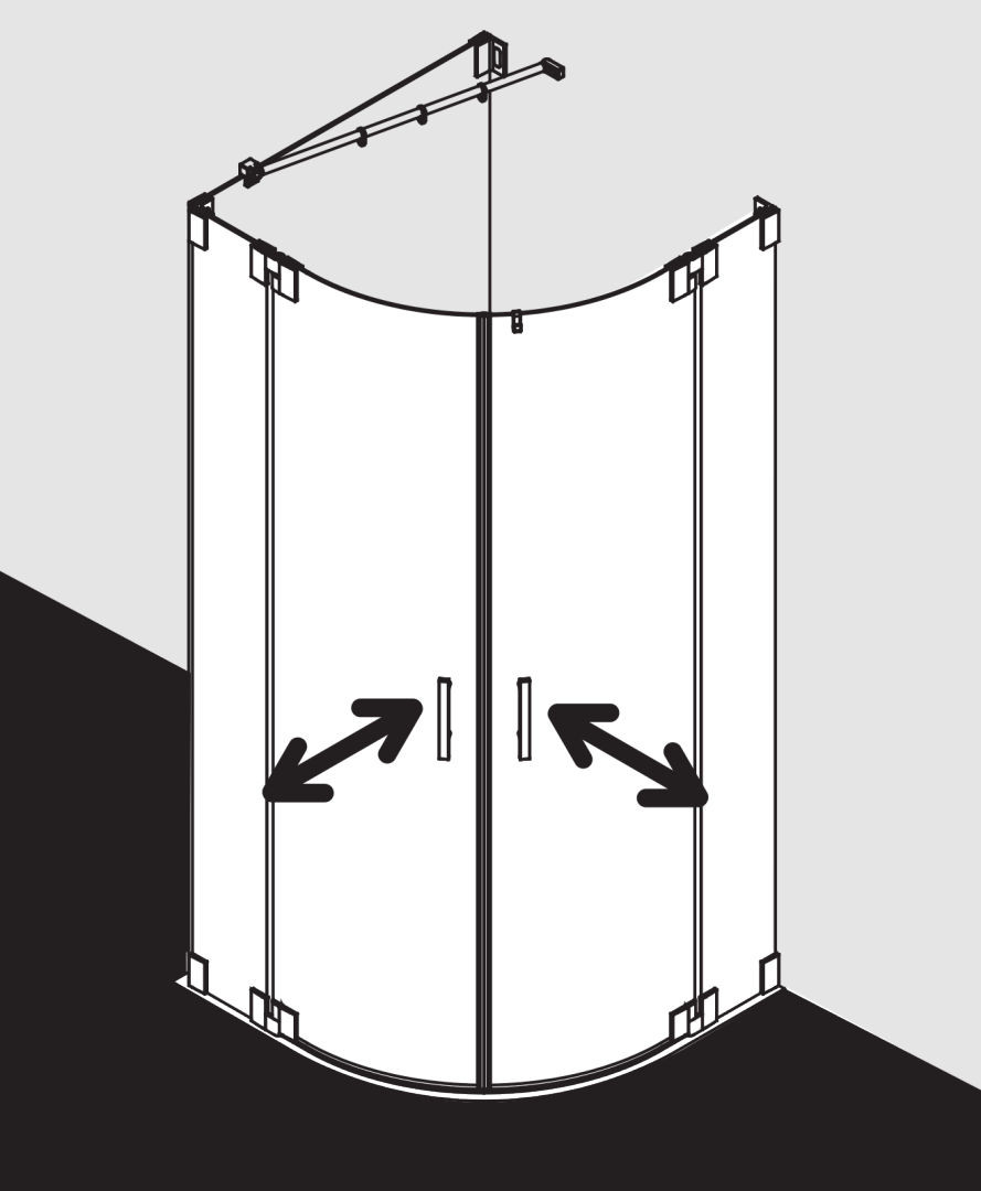 Kermi Duschdesign, FILIA, FI PRD, Viertelkreis-Duschkabine (Pendeltüren mit Festfeldern)