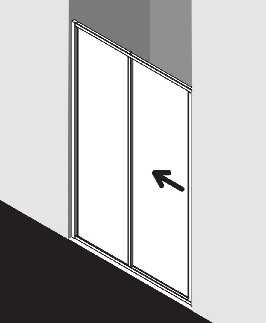zum Einbau in einer Nische und zur Kombination mit allen Ibiza 2000 Seitenwänden, gerahmte Tür, mit einem Gleittürsegment, nach einer Seite öffnend, mit einem Festfeld, Glasstärke 3 mm Einscheiben-Sicherheitsglas nach EN 12150, optional mit Pflegeleicht-Beschichtung, Profile und Griffleisten aus eloxiertem Aluminium, Verstellmöglichkeit je Wandprofil 20 mm, durchgehende Magnetleisten und Dichtprofile, mit Bodenprofil (Höhe 32 mm), Befestigungsmaterial, geprüft nach DIN EN 14428, Schräge waagerecht max. 5 mm, andernfalls Montage nicht möglich, Festfeld wahlweise rechts und links verwendbar