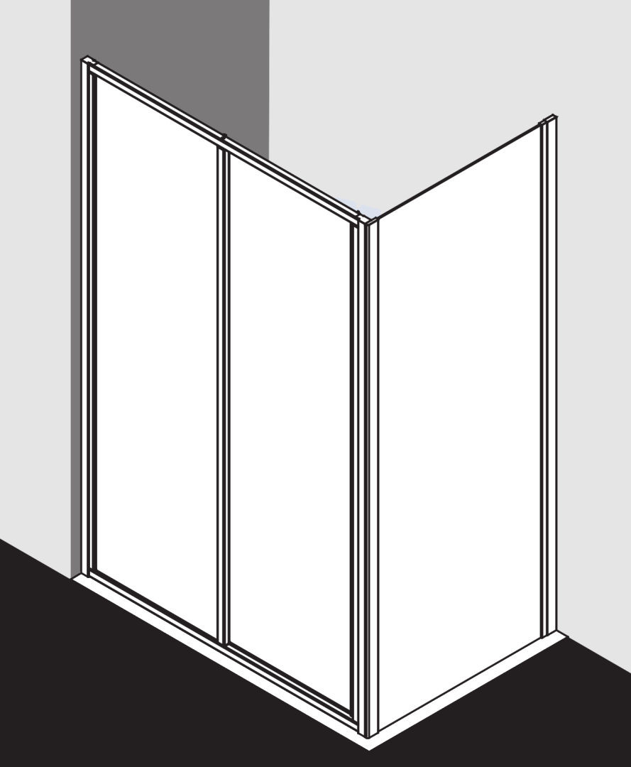 zum Einbau in einer Nische und zur Kombination mit allen Ibiza 2000 Seitenwänden, gerahmte Tür, mit einem Gleittürsegment, nach einer Seite öffnend, mit einem Festfeld, Glasstärke 3 mm Einscheiben-Sicherheitsglas nach EN 12150, optional mit Pflegeleicht-Beschichtung, Profile und Griffleisten aus eloxiertem Aluminium, Verstellmöglichkeit je Wandprofil 20 mm, durchgehende Magnetleisten und Dichtprofile, mit Bodenprofil (Höhe 32 mm), Befestigungsmaterial, geprüft nach DIN EN 14428, Schräge waagerecht max. 5 mm, andernfalls Montage nicht möglich, Festfeld wahlweise rechts und links verwendbar