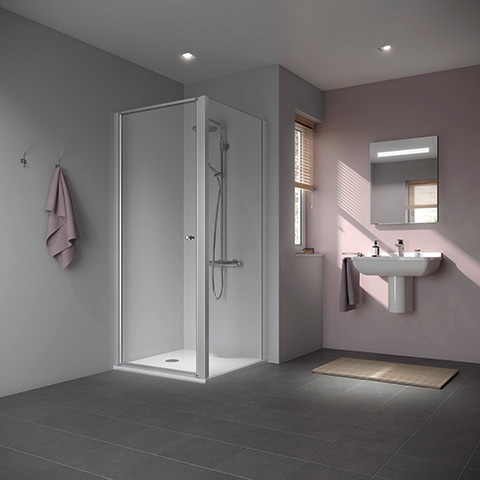 Kermi Schwingtür Ibiza 2000 75 x 175 cm, silber mattglanz, ESG klar Clean ZKI2STW075171PK