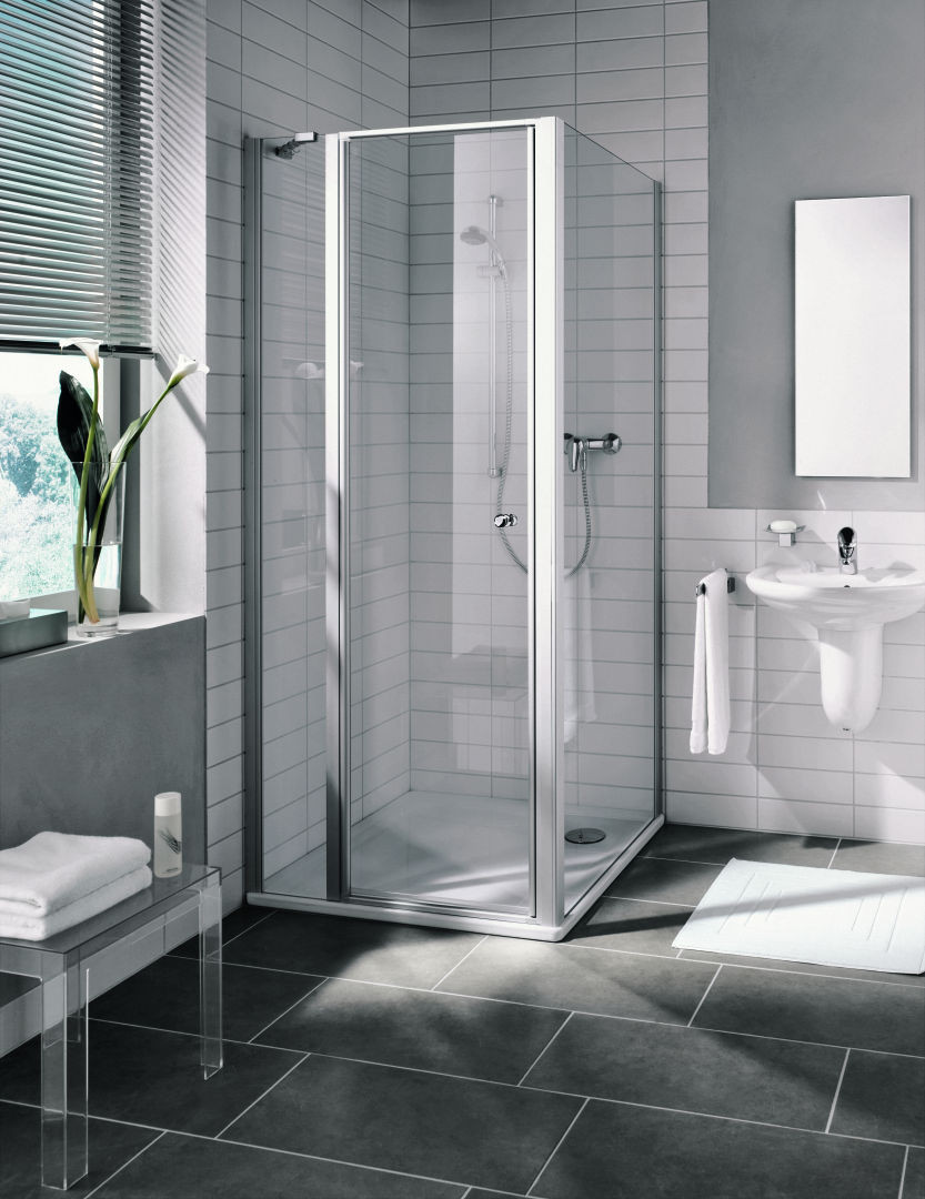 Kermi Schwingtür Ibiza 2000 mit Festfeld 75 x 175 cm, silber mattglanz, ESG klar Clean, links ZKI2STL075171PK