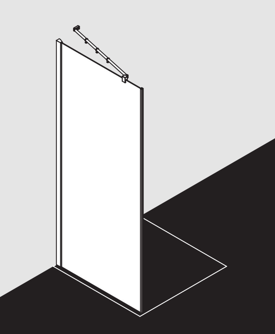 kombinierbar mit FX 1WR/L Pendeltür 1-flügelig mit Festfeld, teilgerahmt, mit Stabilisierung (innen), Glasstärke 6 mm Einscheiben-Sicherheitsglas nach EN 12150, optional mit Pflegeleicht-Beschichtung, Profile aus eloxiertem Aluminium, Verstellmöglichkeit im Wandprofil 25 mm, durchgehende Magnetleiste, mit Befestigungsmaterial, geprüft nach DIN EN 14428, Schräge unter der Seitenwand darf max. 3 mm betragen, rechts und links verwendbar