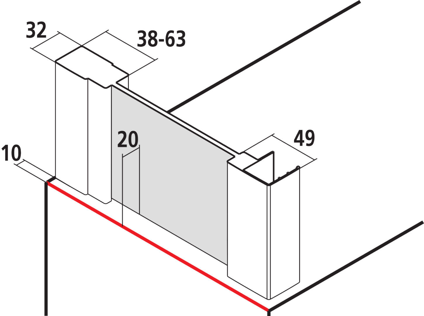 | Einbaubreite Wand für die Montage mit Tür | 735 - 760 mm |