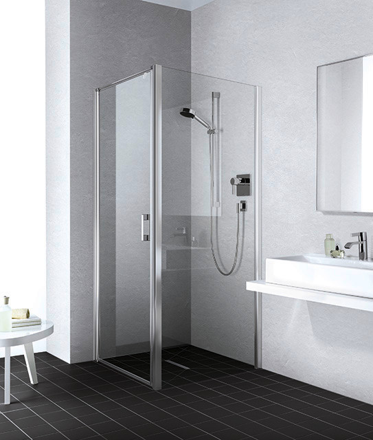 Kermi Seitenwand LIGA 70 x 185 cm, silber hochglanz, ESG klar Clean, auf Duschwanne ZKLITWD07018VPK