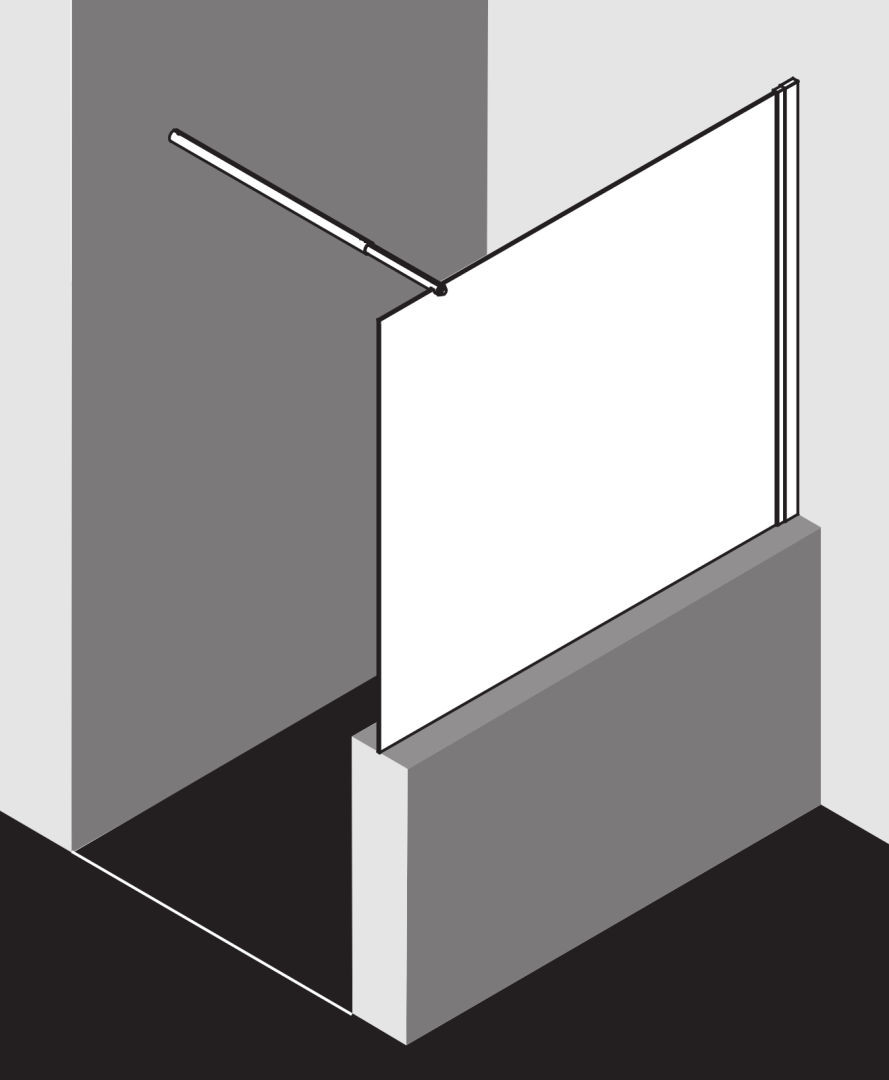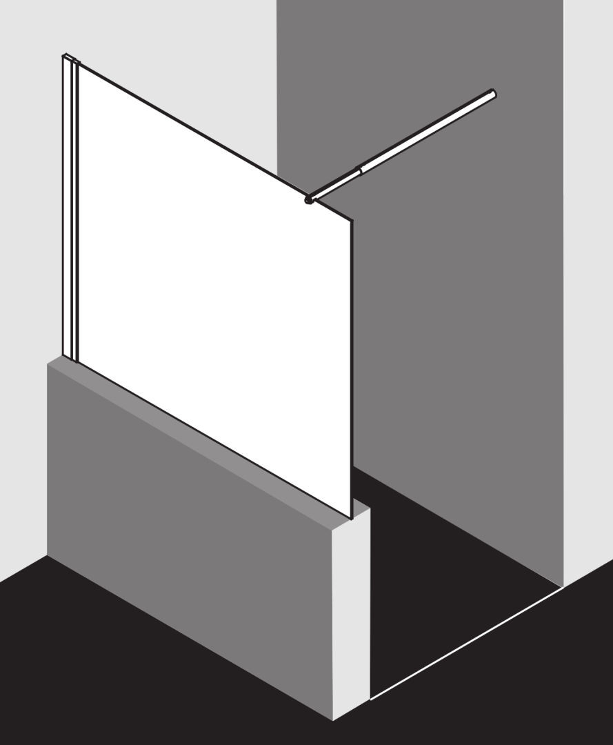 teilgerahmt, mit Wandbefestigung, Glasstärke 6 mm Einscheiben-Sicherheitsglas nach EN 12150, optional mit Pflegeleicht-Beschichtung, Profile aus eloxiertem Aluminium, Stabilisierung (Haltestange) aus eloxiertem Aluminium, Verstellmöglichkeit im Wandprofil 30 mm, mit Befestigungsmaterial, geprüft nach DIN EN 14428, Schräge waagerecht max. 5 mm, verstellbare Stabilisierung 670-1220 mm, rechts und links verwendbar