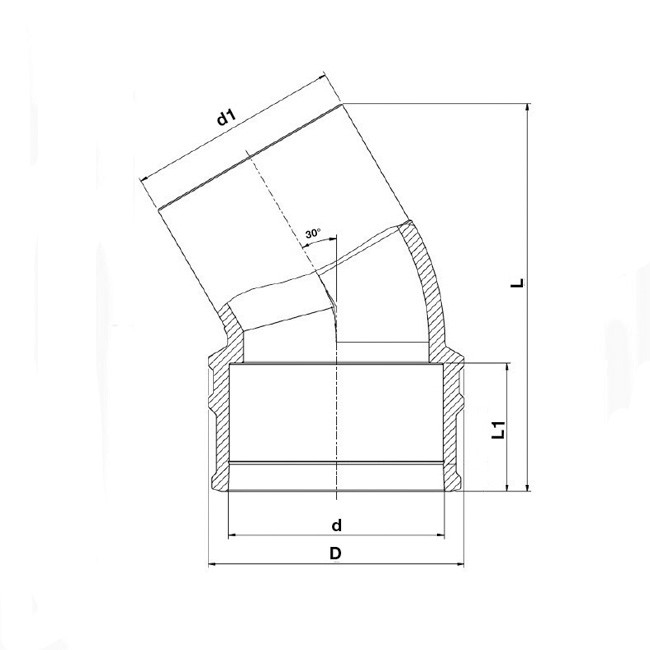 LightFit Winkel 30 (Muffe/Spitzende) grau d 160 PE100 SDR17 für Rohre SDR 17-33, Abwasser 0,5 bar