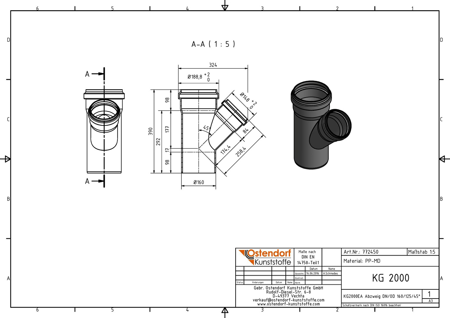 Ostendorf KG2000 Abzweig EA DN/OD 160/125, 45Grad