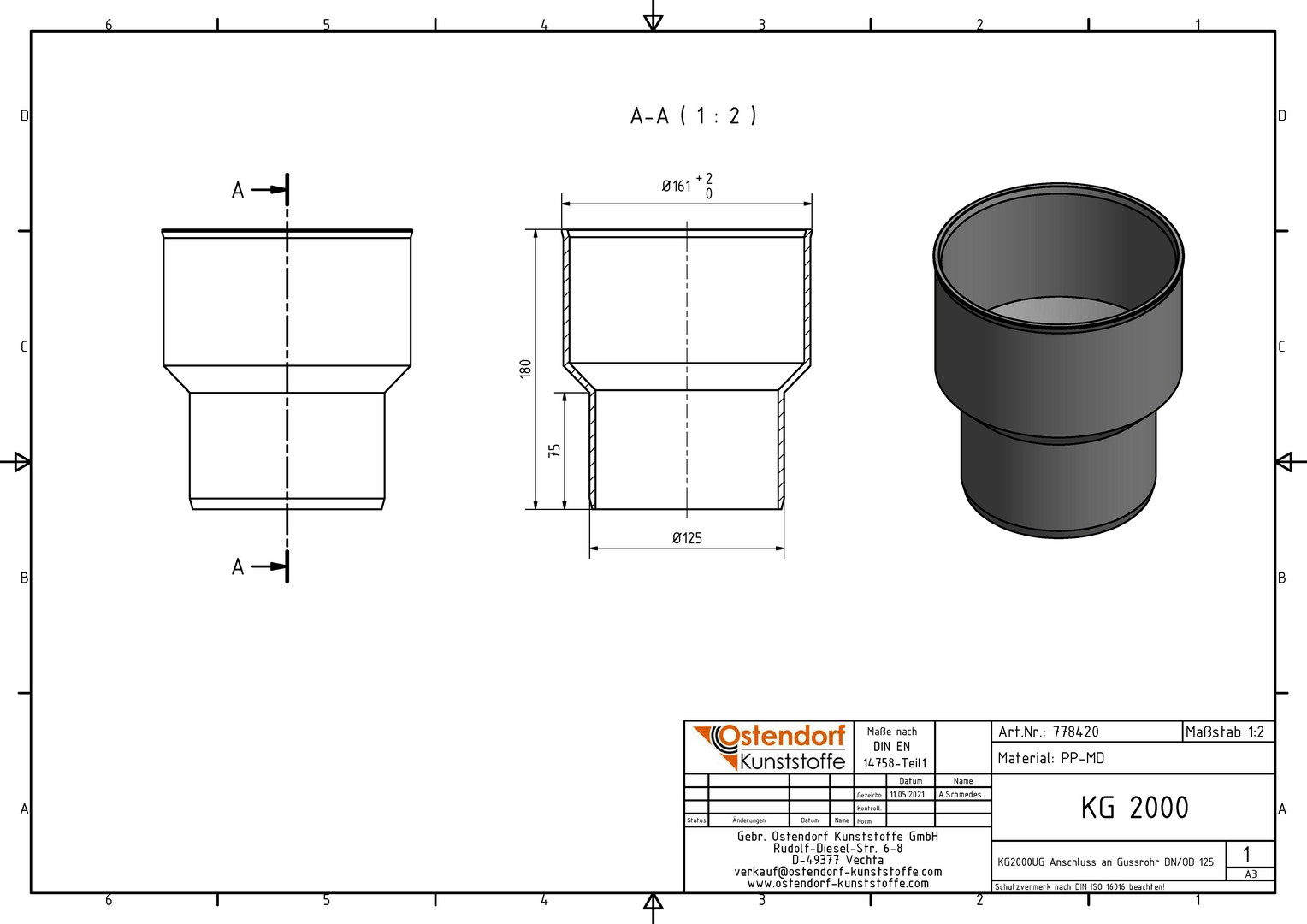 Ostendorf KG2000 Anschluss-Stück UG DN/OD 125, an Gussrohr, ohne Dichtung