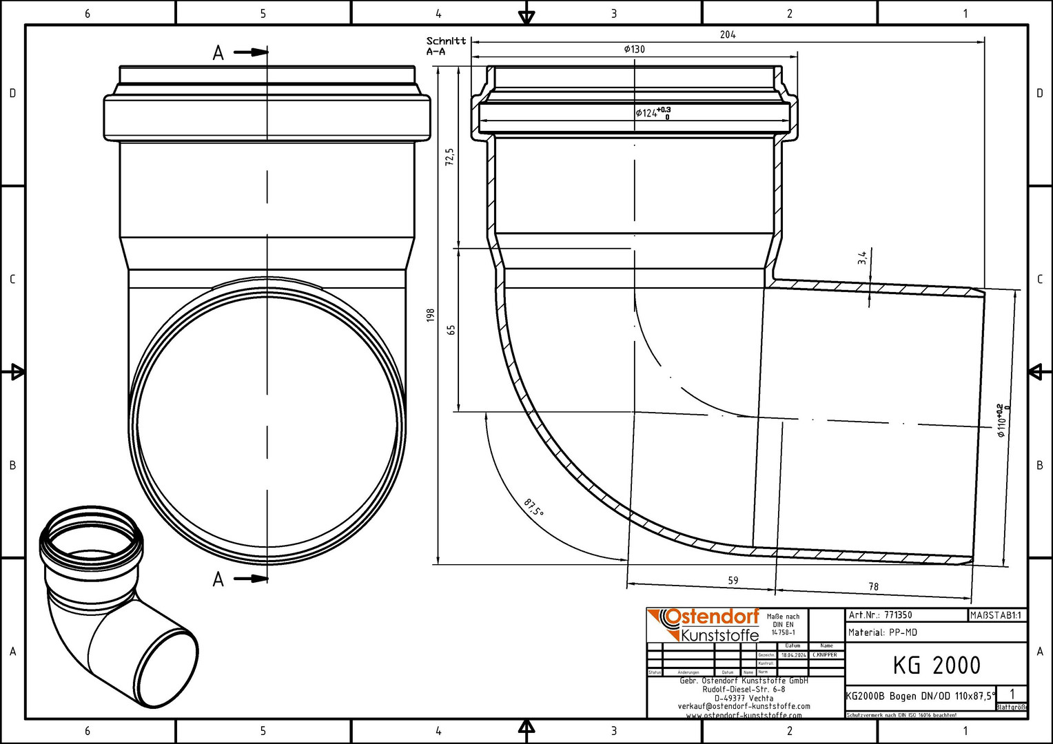 Ostendorf KG2000 Bogen B DN/OD 110, 87,5Grad