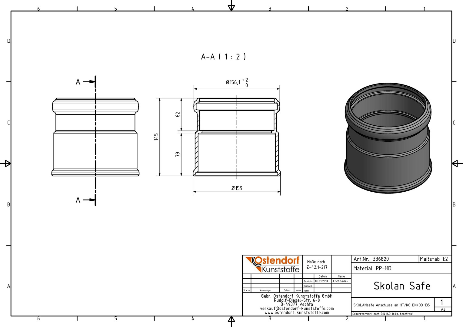Ostendorf SKOLANsafe Anschluss DN/OD 125, an HTsafe