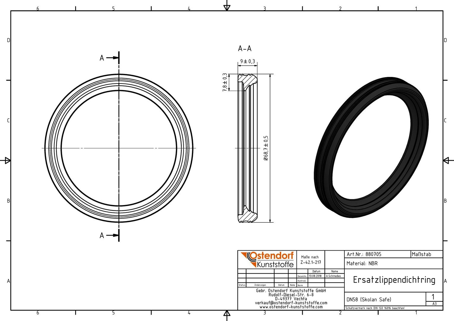 Ostendorf SKOLANsafe NBR-Dichtung ölbeständig, DN 58