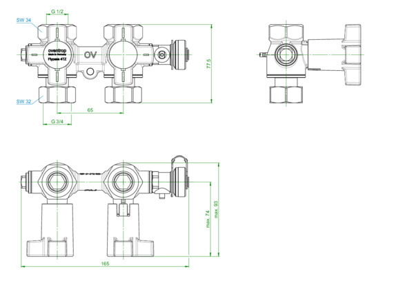Oventrop Anschlussarmatur Flypass 4TZ DN 15, PN 16, Durchgang OV1149504