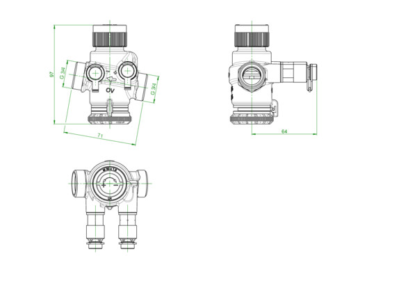 mit zwei montierten Messventilen, Medium Wasser/Wasser-Glykolgemisch, Betriebstemperatur -10 bis 120 °C, mit Voreinstellung, absperrbar, Gehäusewerkstoff EZB Messing, Anschluss Stellantrieb M 30 x 1,5, Nennweiten DN 10, DN 25 und DN 32 flachdichtend, Nennweiten DN 15 und DN 20 konisch dichtend, mit Einlegestück (für DN 15) bzw. (für DN 20) flachdichtend, Messanschluss