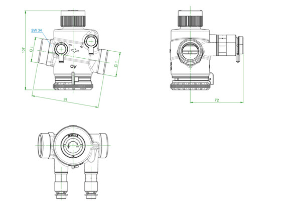 mit zwei montierten Messventilen, Medium Wasser/Wasser-Glykolgemisch, Betriebstemperatur -10 bis 120 °C, mit Voreinstellung, absperrbar, Gehäusewerkstoff EZB Messing, Anschluss Stellantrieb M 30 x 1,5, Nennweiten DN 10, DN 25 und DN 32 flachdichtend, Nennweiten DN 15 und DN 20 konisch dichtend, mit Einlegestück (für DN 15) bzw. (für DN 20) flachdichtend, Messanschluss
