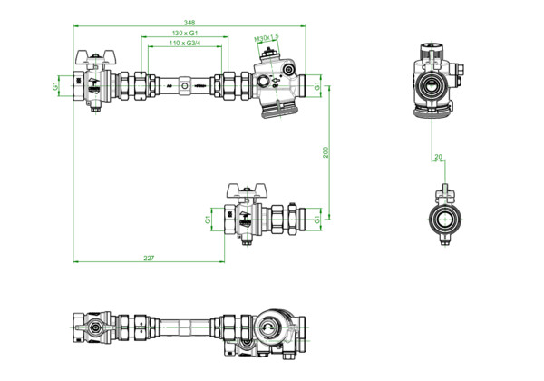Oventrop Wärmemengenzähler-Anschluss-Set Multidis SF mit Cocon-QDP, DN 20 bis 1.350 l/h, Eckform, Kugelhähne DN 20 OV1404884