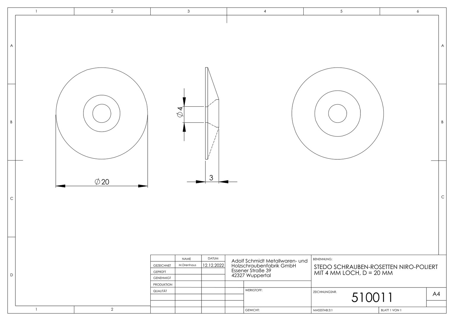STEDO Schraubenrosette d= 4,0, D= 20 mm, Niro poliert