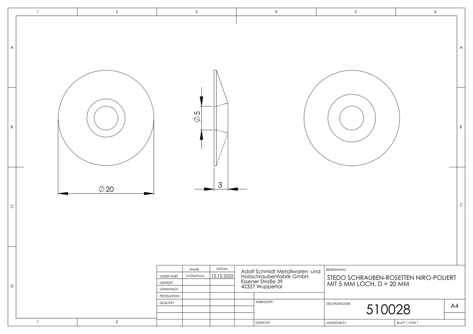 STEDO Schraubenrosette d= 5,0, D= 20 mm, Niro poliert