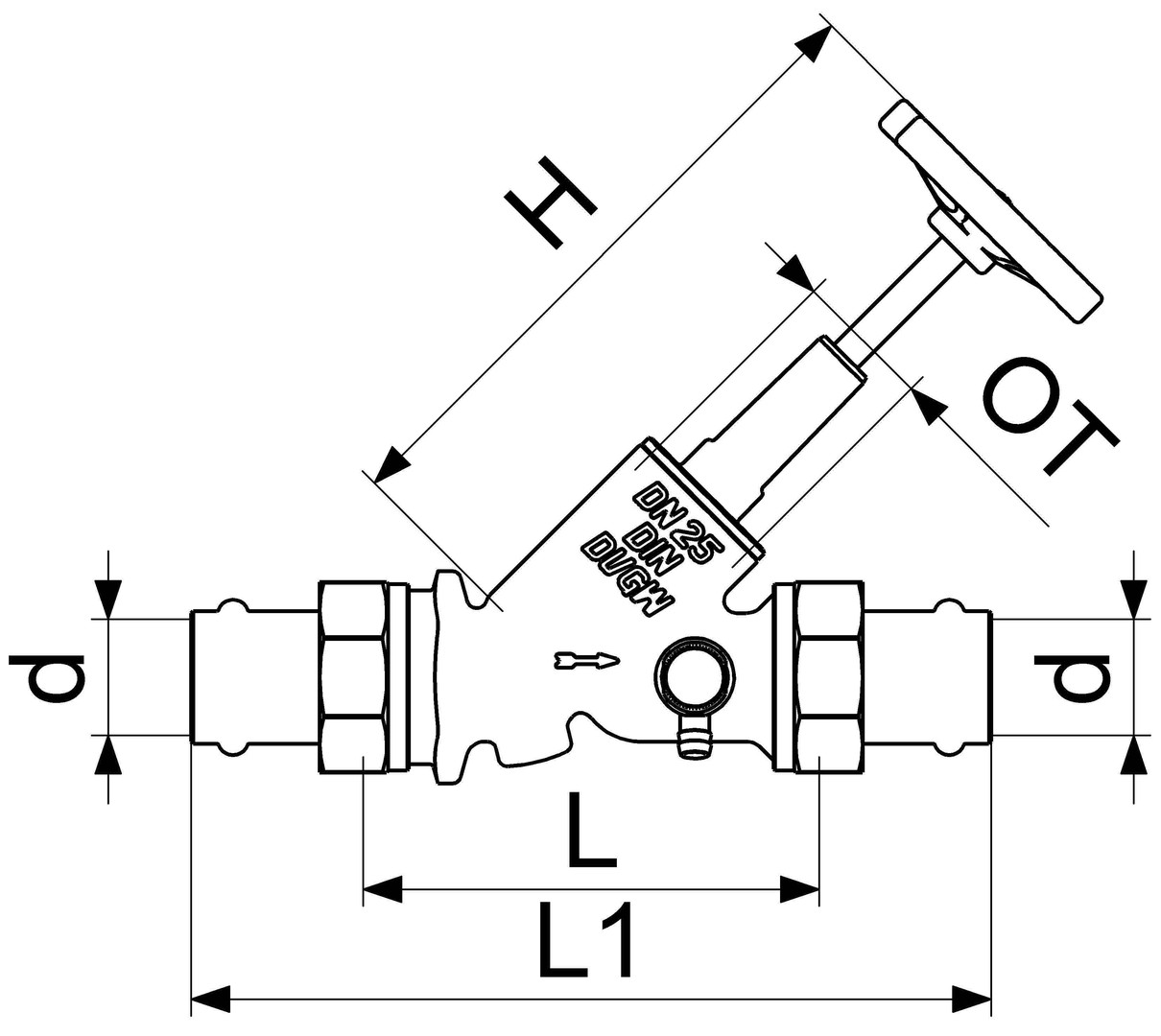 Schlösser Freistromventil Blue-tec MULTI 1559 DN 25, 28 mm, AG mit Entleerung, steigende Spindel XO0015592800001