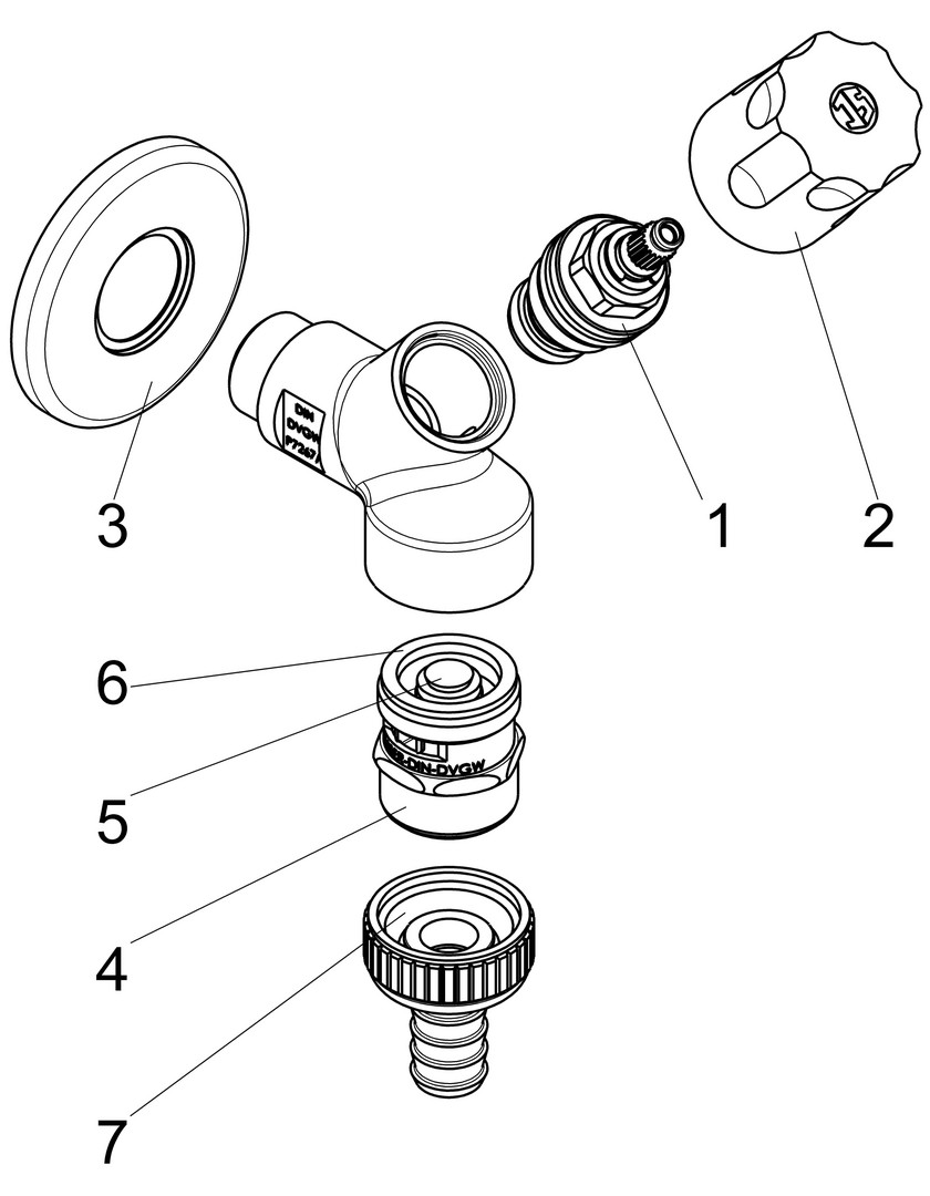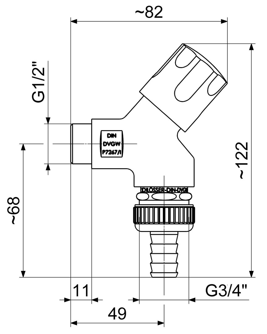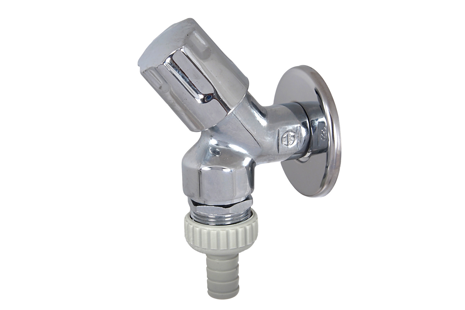 Schlösser Geräteschrägsitzventil 7165 DN 15, 1/2", Designgriff, Schlauchverschraubung, Rohrbelüfter, poliert verchromt