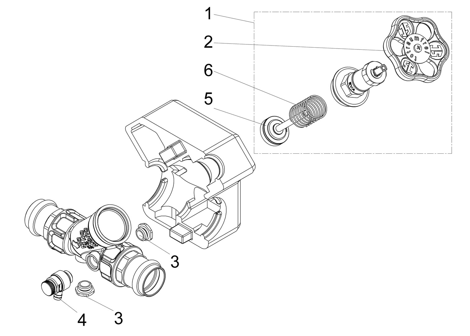 mit direktem Pressanschluss, Viega-Pressnippel, Schallschutz (DN 15-32), mit Prüfschraube, Entleerungsventil 1831 1/4", Oberteil 1821