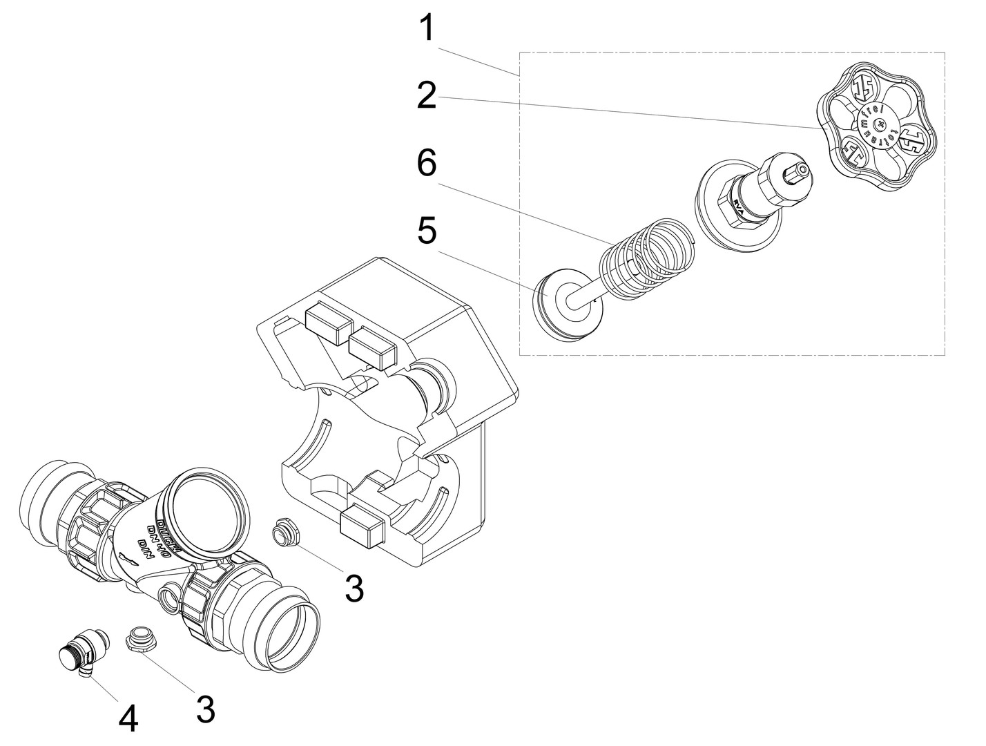 mit direktem Pressanschluss, Viega-Pressnippel, Schallschutz (DN 15-32), mit Prüfschraube, Entleerungsventil 1831 1/4", Oberteil 1821