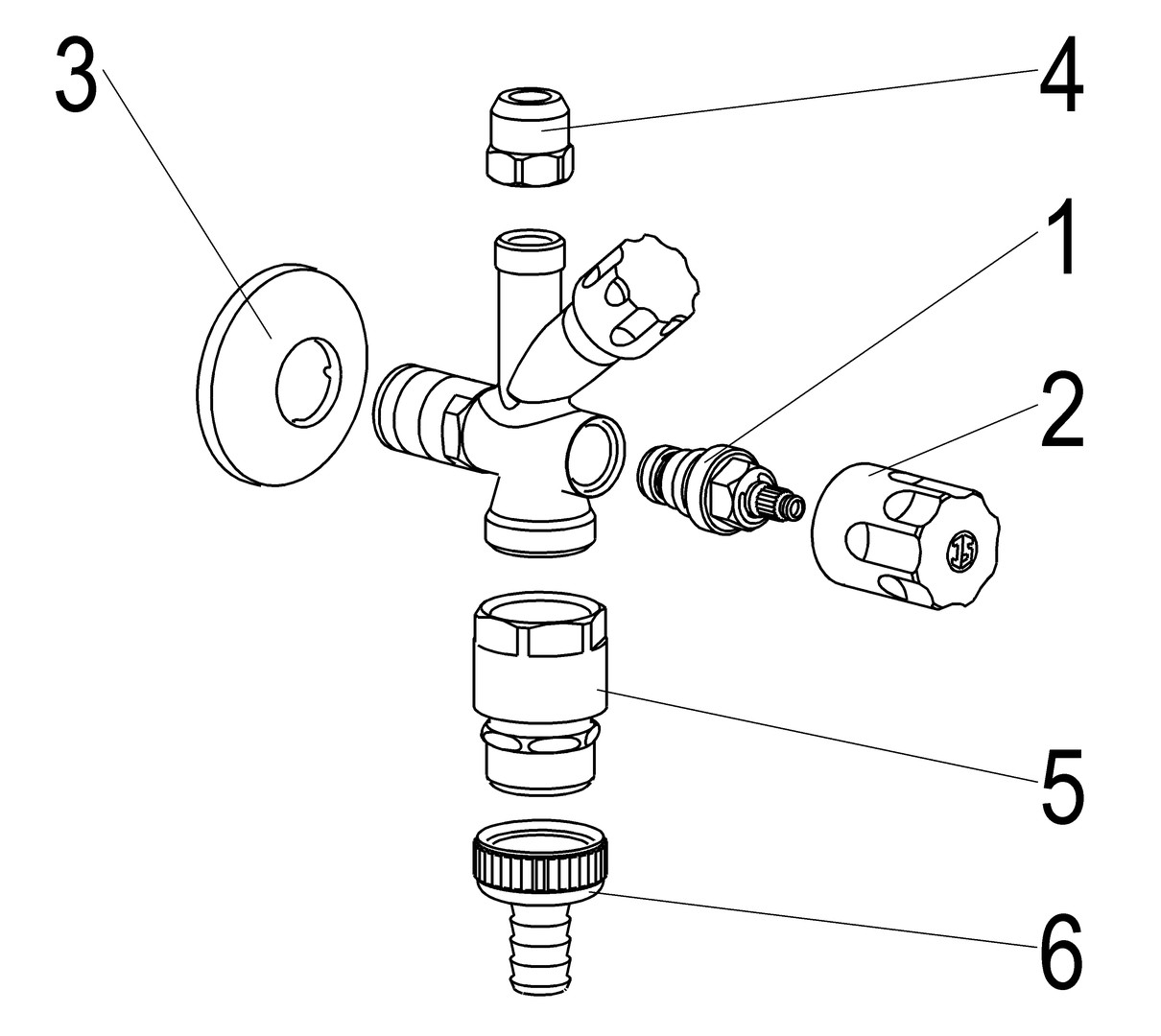 mit Rückflussverhinderer, Rosette und Schlauchverschraubung, mit Rohrbelüfter