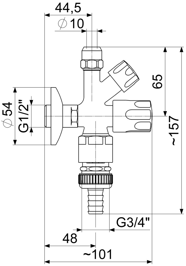 mit Rückflussverhinderer, Rosette und Schlauchverschraubung, nicht selbstdichtend
