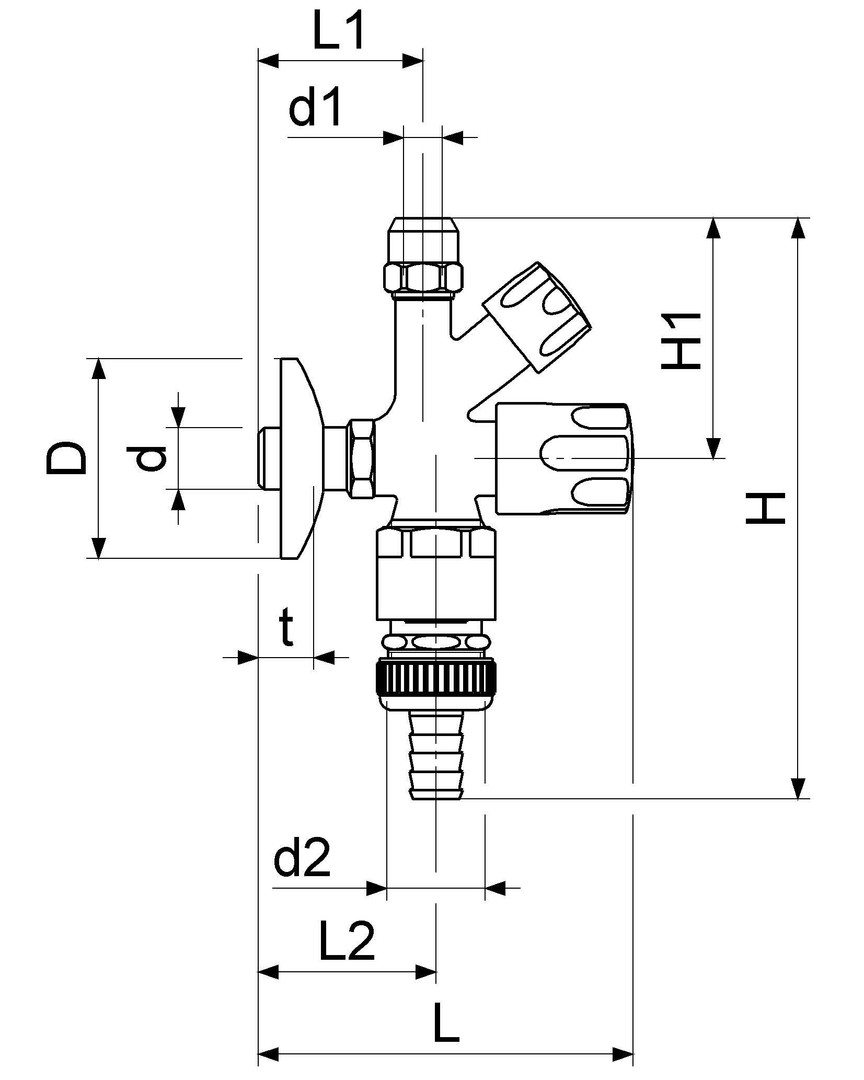 mit Rückflussverhinderer, Rosette und Schlauchverschraubung, nicht selbstdichtend