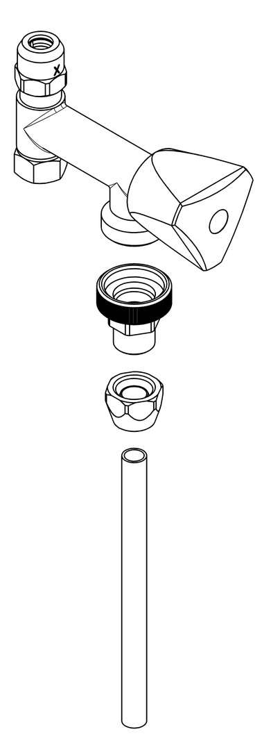 Oberfläche poliert-verchromt, Rohre aus Edelstahl, Verschraubung aus Messing