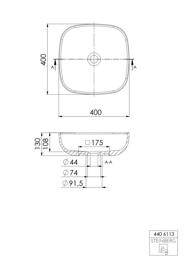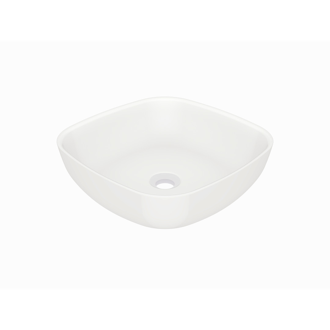 Serie 440 Aufsatzwaschtisch quadratisch aus Solid Surface ohne Hahnloch, 400 mm x 400 mm, Schaftventil separat bestellen, weiß