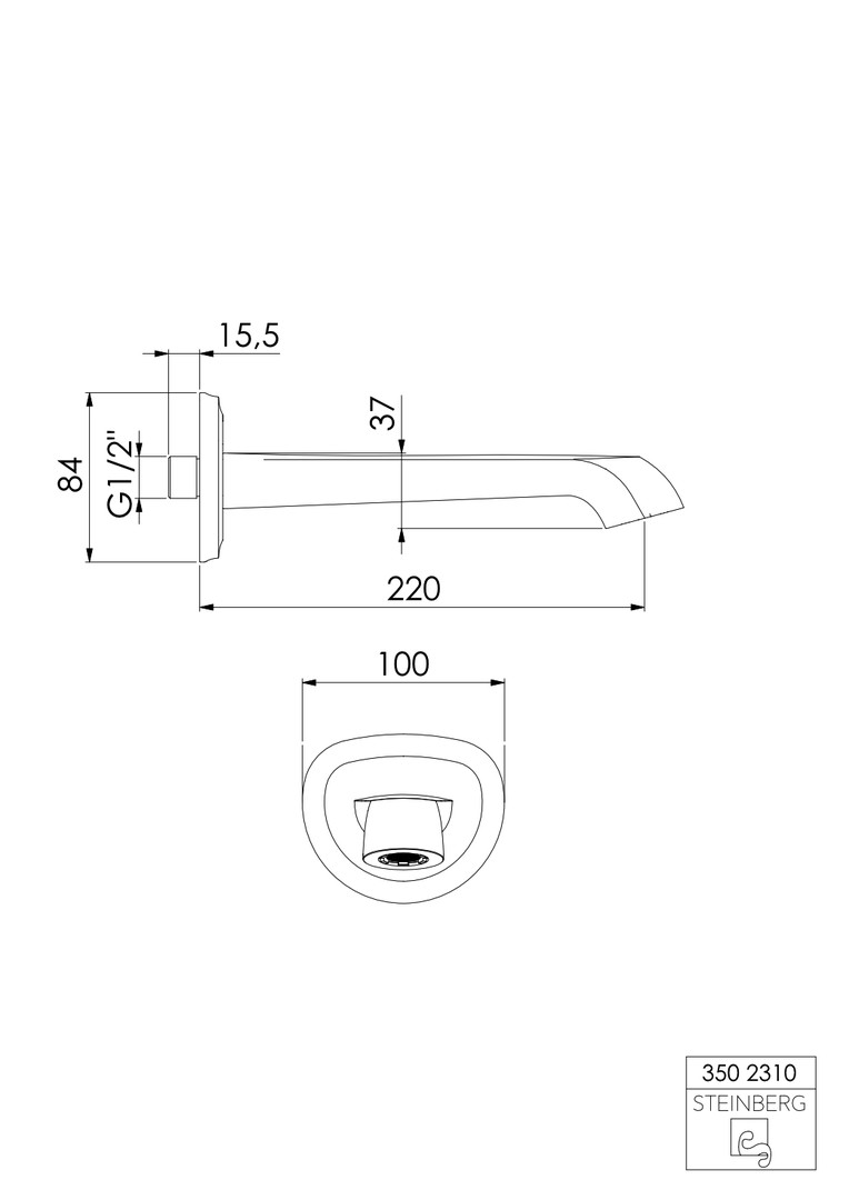 Steinberg Auslauf Serie 350 Waschtisch/Wanne, Ausladung 220mm, chrom