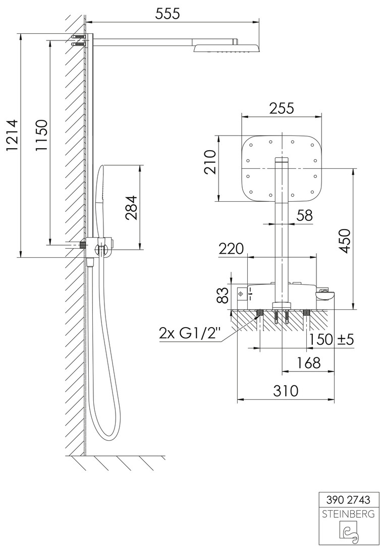 Steinberg Brauseset Serie 390 Sensual Rain mit 2-strahliger Kopfbrause, chrom