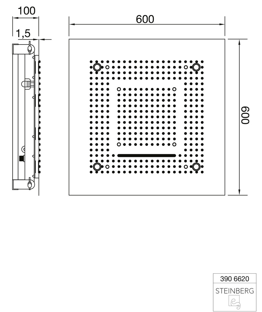Steinberg Regenpaneel Serie 390 Relax Rain 600x600mm, mit LED, für Deckeneinbau, Edelstahl poliert