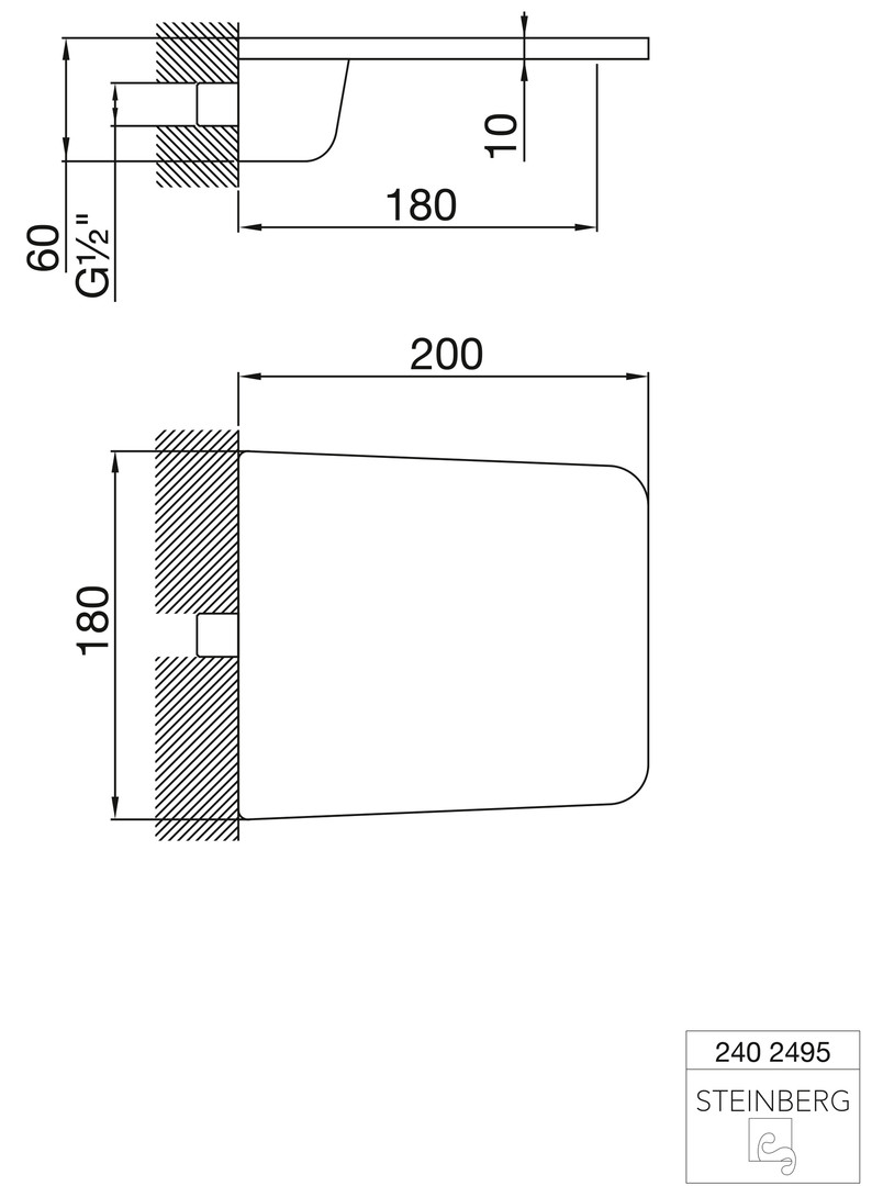 Steinberg Schwallauslauf Serie 240 1/2", Ausladung 180mm, Wandmontage, chrom