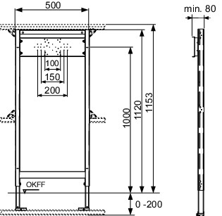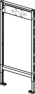 zur Befestigung an TECEprofil-Profilrohren oder für den Einbau in Metall- oder Holzständerwände und als Vorwand- oder Eckmodul, komplett vormontierte Einheit bestehend aus selbsttragendem Montagerahmen mit pulverbeschichteter Oberfläche, 2 verstellbaren Fußstützen für einen Fußbodenaufbau von 0-200 mm, stufenlos verstellbarer Traverse zur Aufnahme von UP-Armaturen oder Wandscheiben
