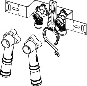 vorgefertigte Montageeinheit, bestehend aus 2 TECElogo-Ax Wandscheiben, verdrehsicher montiert auf TECE Wandhalter mit Schallschutzelemente und Halter für Ablaufbogen, für die Trinkwasserinstallation