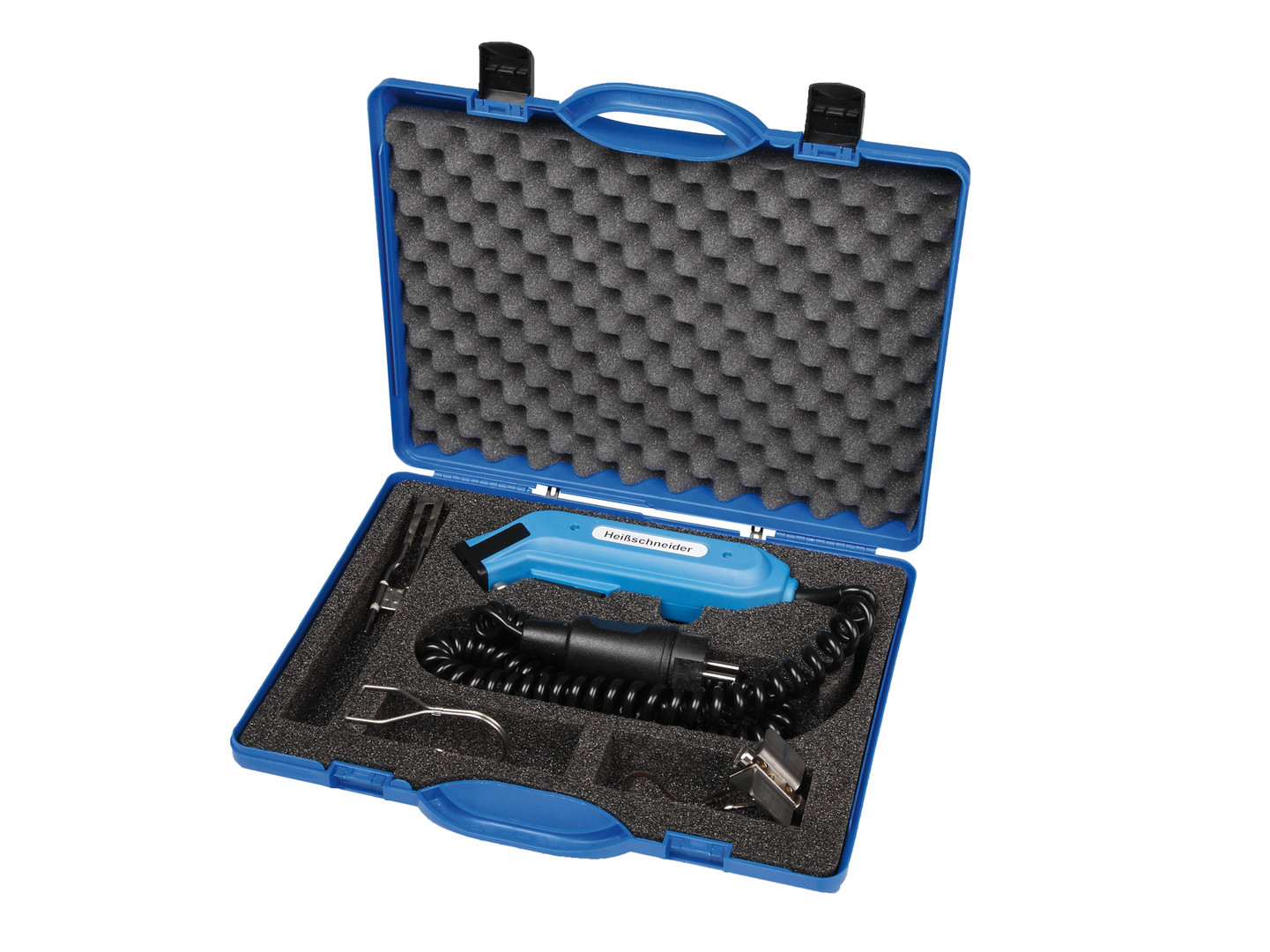 Heißschneider mit U-förmiger Schneidklinge (Dimension 12 und Dimension 16) zum Schneiden der Zuleitungsführungen in EPS Ausgleichselementen, Anschlussspannung 230 V
