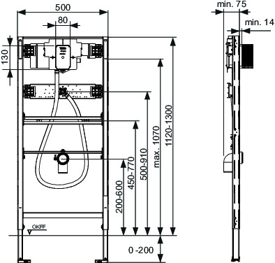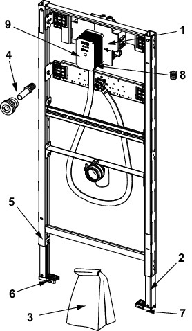 zur Kombination mit TECEfilo Urinalelektroniken, zur Befestigung an TECEprofil Profilrohren oder für den Einbau in Metall- oder Holzständerwände und als Vorwand- oder Eckmodul, komplett vormontierte Einheit bestehend aus, TECE-Urinalspülergehäuse U 2 mit Vorabsperrung und Rohbauschutz, 230 V/ 12V-Trafo für den direkten 230 V-Anschluss integriert, Anschluss IG 1/2, 2 verstellbaren Fußstützen für einen Fußbodenaufbau von 0-200 mm, Bautiefe 75 mm, 2 Haltebolzen M8, stufenlos verstellbarer Befestigungsschiene, stufenlos höhenverstellbarem Abwasseranschluss, Anschlussbogen DN 50 mit Bauschutzstopfen, Befestigungsmaterial für Urinal und Einlaufgarnitur 1/2