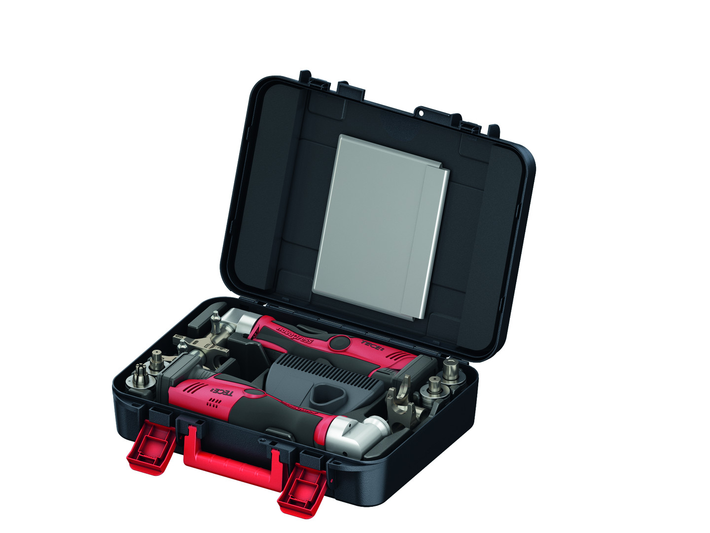bestehend aus RazFaz-Akkuaufweitwerkzeug, RazFaz-Akkupresswerkzeug, Aufweitköpfe 16-32 mm, Doppel-Pressgabeln 14/16-20 mm und 25-32 mm, 2 Akkus, Schnellladegerät, Werkzeugkoffer