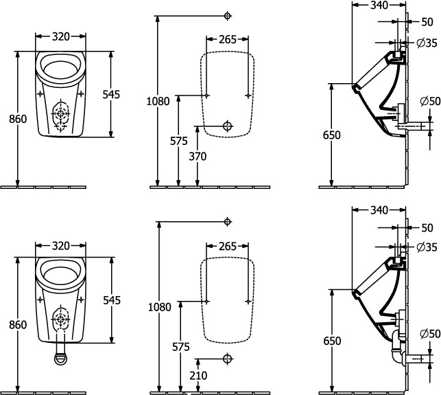 Absaug-Urinal, Sanitärkeramik, Maße 320 x 340 x 545 mm, Rechteck, Spülwasserbedarf 1 l, EN 13407, Ablauf je nach Typ des Absaugformstücks verdeckt, im bestehend aus 1 x Absaug-Urinal, 1 x Befestigungssatz