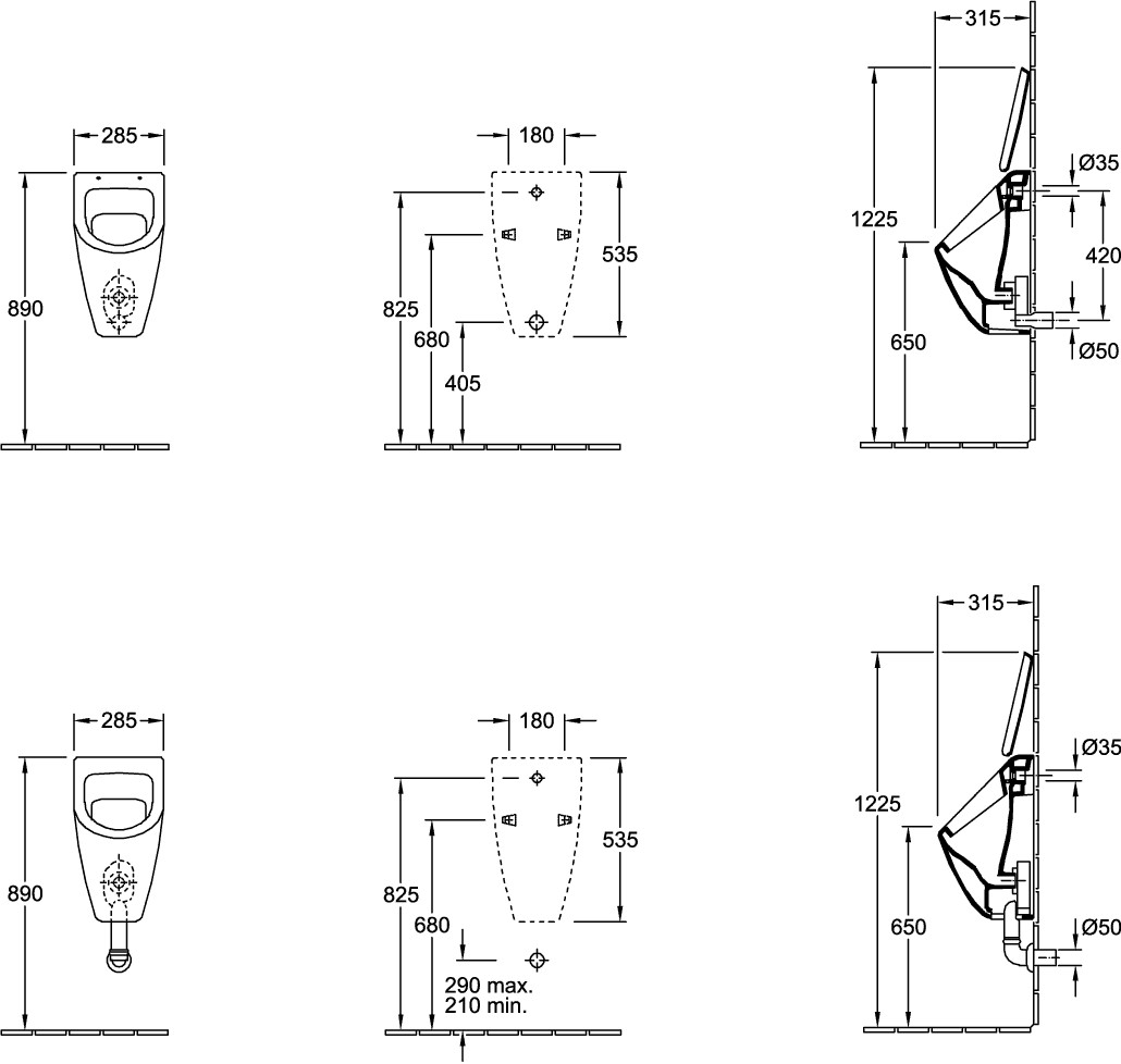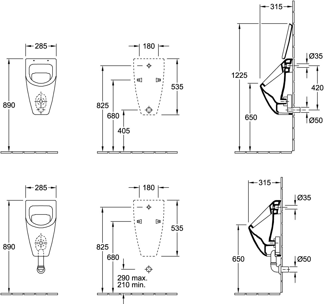 28,5 x 53,5 x 31,5 cm, EN 13407, Befestigungssatz für verdeckte Befestigung wird mitgeliefert, Zulauf verdeckt, Ablauf je nach Typ des Absaugformstücks verdeckt